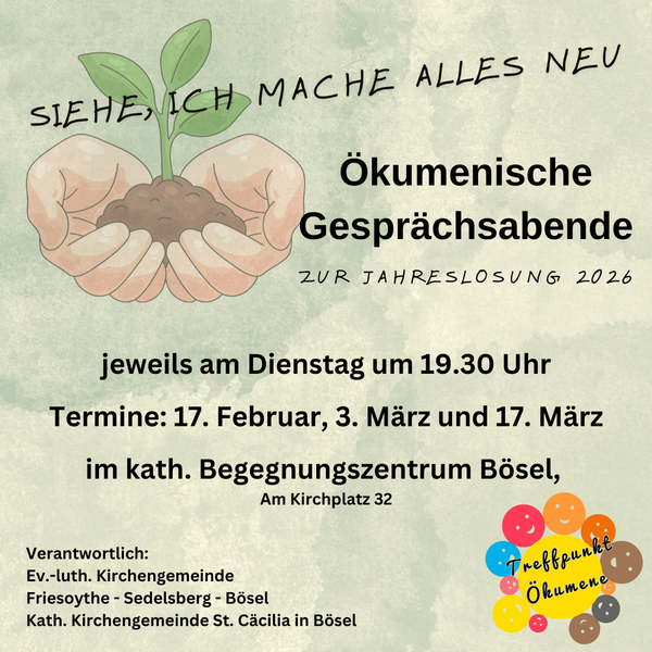 Schauen Sie doch gerne mal vorbei - nicht nur im Internet, sondern auch in den Kirchen und Gemeindehäusern in Friesoythe, Sedelsberg, Bösel und Schwaneburgermoor. Wir freuen uns auf die Begegnung.