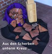 In Sedelsberg an der Trinitatiskirche können (Ton-) Scherben am Kreuz abgelegt werden. Wer mag bringt eine von zu Hause mit, es liegen aber auch welche vor Ort. Mit Wort oder Gedanken bestückt oder auch nur mit einem stillen Gebet, bringen wir die Bruchstücke unseres Lebens, die Scherben vor Gott.