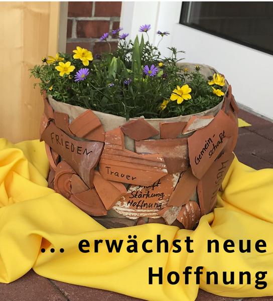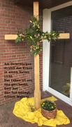 Er wird sie verwandelt und etwas Neues entstehen lassen, das soll dann am Ostersonntag in Sedelsberg zu sehen sein. Die Scherben werden verwandelt und das Kreuz soll mit grünen Zweigen und bunten Blüten zu einem Zeichen der österlichen Hoffnung werden. In vielen Gärten wächst gerade so viel, da findet sich bestimmt etwas für das Kreuz.